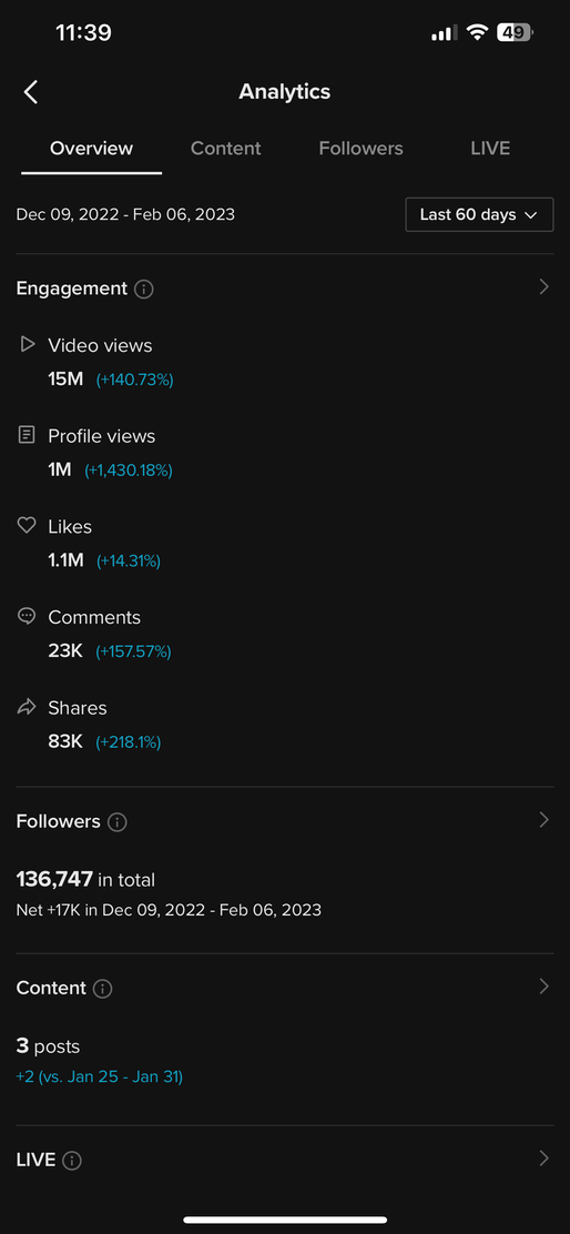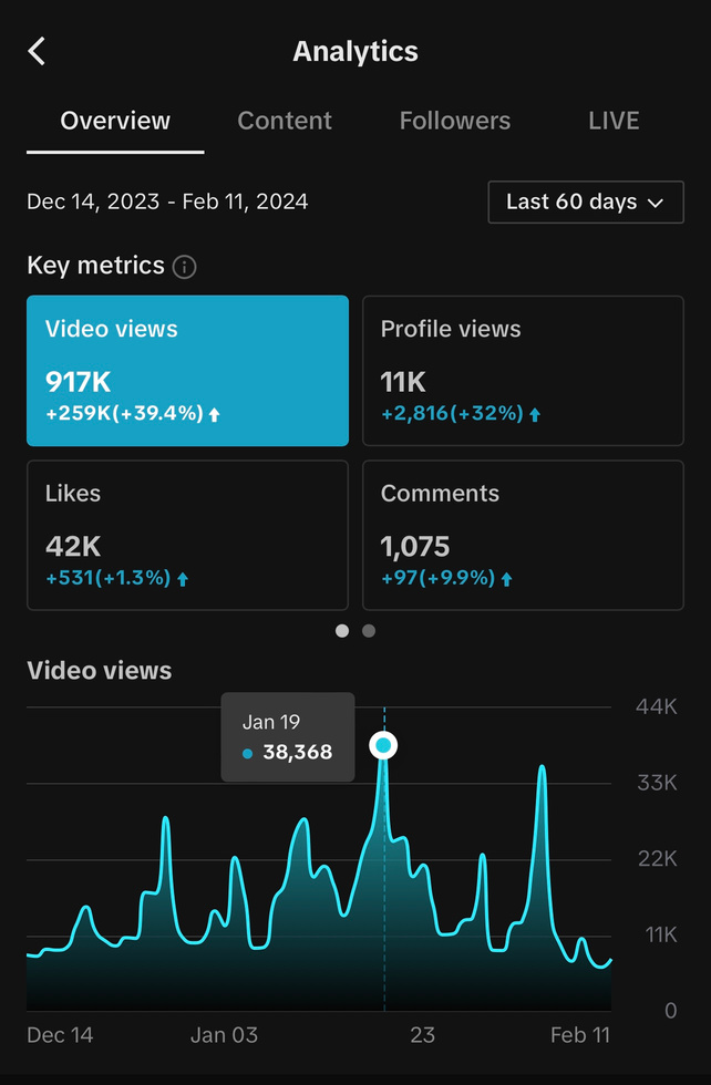 TikTok Analytics over the last 60 days (Dec. 2023 - February 2024)
